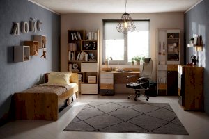 Лаконичная полка с ограничителем дополнит интерьер. Полочки для малыша должны быть размещены не очень высоко, так, чтобы он мог дотянуться до содержимого с невысокого стула или своей кровати. Для подростков же, полки могут располагаться на любой высоте, в соответствии с желанием хозяина комнаты.