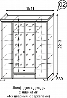Шкаф 4-х дверный с ящиками и зеркалом №2 Венеция (Ижмебель)
