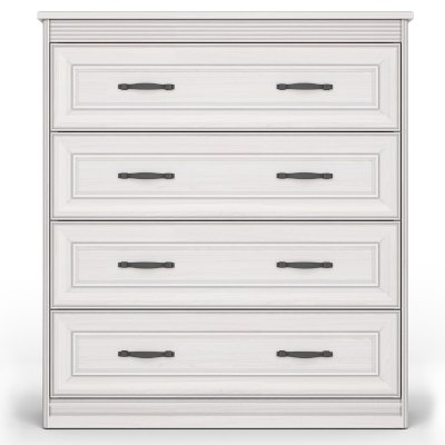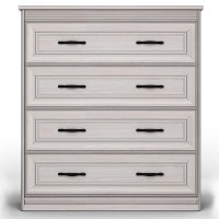 В комоде вам доступны четыре выдвижных ящика на шариковых направляющих с механизмом полного выдвижения. Такая конструкция позволяет структурировать и упорядочить хранение. А отдельным бонусом применения такого предмета в интерьере является возможность украсить пространство, расположив на столешнице вазу, статуэтку или красивый светильник.