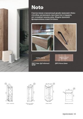 В поисках стильной и многофункциональной прихожей обратите внимание на мебель для прихожей Noto. Коллекция представлена набором базовых модулей, комбинируя которые между собой, Вы сможете грамотно обустроить входную зону. Благодаря конструкции шкафов, тумб и вешалки у Вас появится место для хранения верхней одежды, сезонных аксессуаров, уличной и домашней обуви, домашних мелочей, а также зона для обувания. Мебель изготовлена из ЛДСП высокого качества и представлена в актуальном цветовом решении - сочетании дуба табачного и черного крафта. Прихожая Noto - Ваш стиль и комфорт.