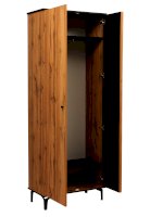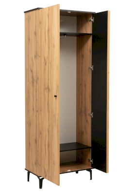 Данный модуль – самая распространенная и востребованная модель шкафа. Сверху расположена полка-антресоль из ЛДСП, под ней закреплена металлическая штанга для вешалок, внизу – еще одна полка. Каждая из полок выдерживает вес до 5 кг. Отличительная особенность – шкаф достаточно узкий по глубине – 429 мм, поэтому штанга для вешалок расположена фронтально, и одежда висит к вам «лицом» - в анфас, а не в профиль, как в шкафах пошире. Но одежды помещается в достаточном количестве, а сама штанга выдерживает до 20 кг.  Такие размеры позволяют найти место шкафу даже в самом маленьком помещении.