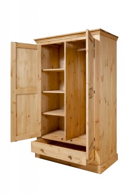 Наполнение: За дверкой слева 3 съёмные полки, за правой дверкой съёмная штанга. 1 выдвижной ящик на деревянных полозьях.