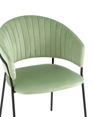 Стильный кухонный стул с оригинальной формой спинки, высокой поддержкой и подлокотниками. В качестве обивки используется мягкий велюр – приятный на ощупь износостойкий, гигроскопичный материал. Металлический каркас в черном цвете огибает спинку и выступает аккуратным акцентом модели. Широкое сиденье обеспечивает удобную посадку и уют.