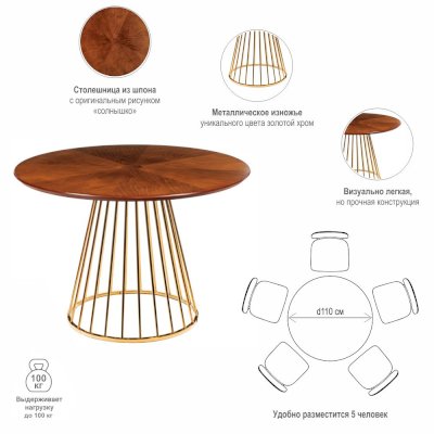 Стол Liverpool, со столешницей, выполненной в роскошном оттенке "орех", с золотистыми ножками идеально впишется в любой современный интерьер. Этот незаменимый и функциональный предмет мебели придется по вкусу не только людям творческим, поклонникам ультрамодных стилей винтаж или лофт, но и более сдержанным натурам, предпочитающим лаконичность и минимализм. Стол Liverpool имеет удобную высоту и способен выдерживать нагрузку до 100 килограммов.