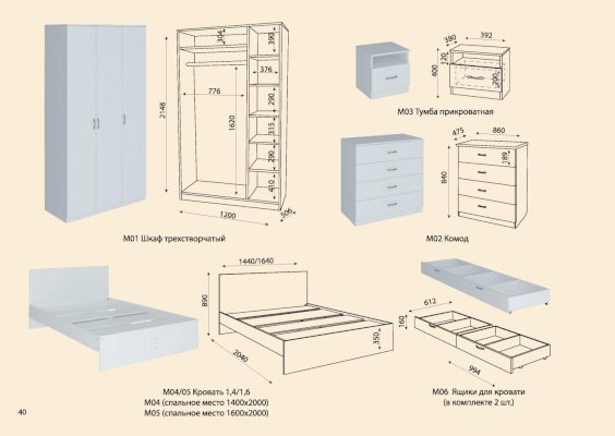 Размер спального места 140*200 / 160*200