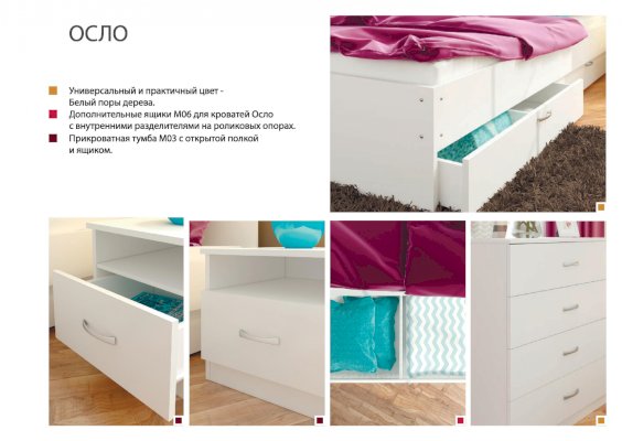 1. Дополнительные ящики МО6 для кроватей Осло с внутренними разделителями на роликовых опорах.
