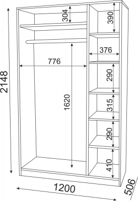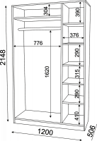 • Размер:(Ш×Г×В): 1200x506x2148 мм