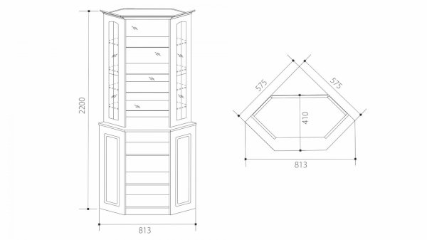 В-2 Витрина угловая с зеркалами МДФ матовый
