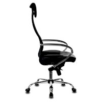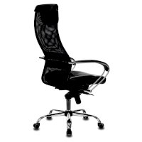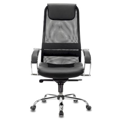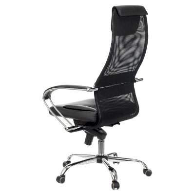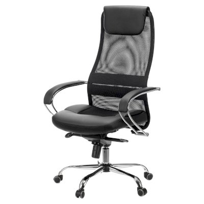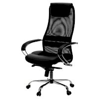 Обивка спинки из сверхпрочной износоустойчивой сетчатой ткани. Данная конструкция имеет ряд преимуществ: воздухопроницаемость - летом в кресле не жарко, а зимой не холодно в отличие от того же кожзама; аккуратный, не громоздкий внешний вид; эргономичная посадка с выраженной поясничной поддержкой. Сиденье кресла просторное с плотной набивкой поролона средней жесткости. Износостойкая объемная мебельная ткань TW практически не выцветает. Комфортный подголовник и подлокотники с мягкими накладками из искусственной кожи добавляют презентабельности и легко чистятся.