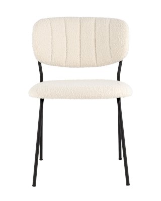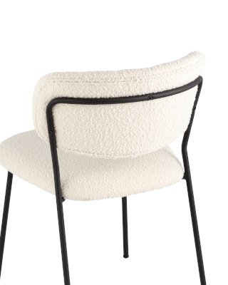 Современный обеденный стул без подлокотников и металлическими ножками. Обивка выполнена из мягкой и легкой ткани букле. Красивый и очень мягкий материал, который оставляет ощущение теплоты и уюта. Металлический каркас черного цвета огибает спинку и плавно переходит из подлокотников в ножки. Широкое сиденье обеспечивает удобную посадку и уют. На подлокотниках для дополнительного комфорта предусмотрены мягкие накладки.