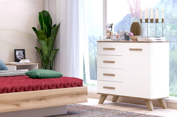 Комод на высоких ножках «Вега Скандинавия» многофункционален и практичен, подойдет для использования в качестве тумбы под телевизор в гостиной или спальне, а также для хранения вещей. Если вам необходимо купить комод, нужно обратить внимание на его вместительность и дизайн.