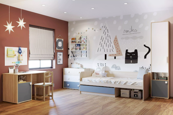 Элиот – отличный комплект мебели для подростковой комнаты! Мебель для современного подростка должна быть стильной, молодежной, функциональной и безопасной. Коллекция Элиот отвечает всем этим требованиям. «Взрослый дизайн» мебели включает три цвета декора, идеально гармонирующие между собой. Удобные ручки разной формы позволяют безопасно и комфортно пользоваться всеми ящиками, тумбами и шкафами.