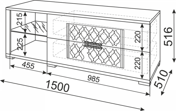 • Размер:(Ш×Г×В): 1500х510х518 мм