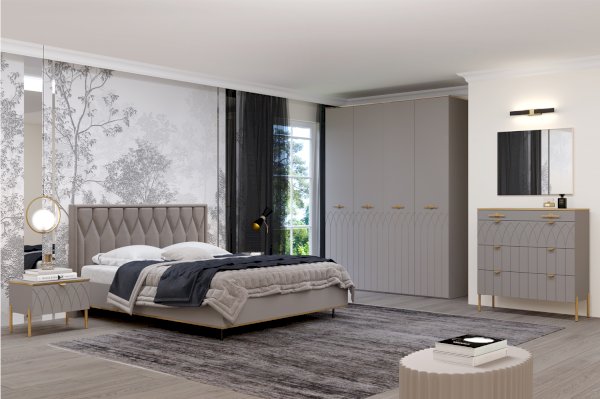 • Надежные материалы – ЛДСП класса эмиссии Е 1 в сочетании с МДФ фасадами. Поверхность фасадов soft touch с фигурной фрезеровкой – один из самых модных трендов в дизайне мебели. Яркие ручки и золотая кромка эффектно подчеркивают стиль мебели.