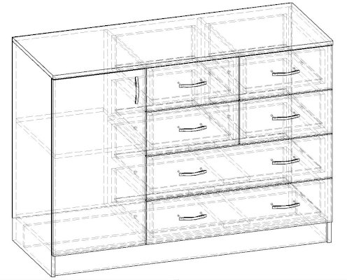 • Корпус, полки и фасады изготовлены из ЛДСП 16 мм с кромкой ПВХ 0,4 мм.