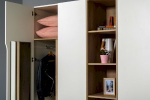 • Выдвижные ящики в шкафу за распашными фасадами