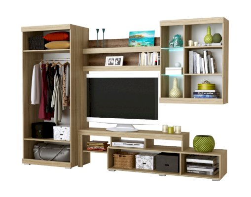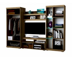 В гостиной Соната применяются современные европейские декоры: корпус выполнен из ЛДСП Дуб сонома, фасад из ЛДСП Дуб Сакраменто. Декоры отличаются выраженной тёплой древесной текстурой, а фасадная часть подчёркнута горизонтальными линиями текстуры и стильными планками МДФ, представляющими собой элементы корпуса и фасада.