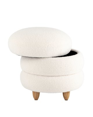 Круглый пуфик Винни в скандинавском стиле. Обивка выполнена из ткани тедди - очень мягкий и приятный на ощупь материал. Прочный каркас из фанеры выдерживает нагрузку до 150 кг. Вместительный ящик для хранения мелочей внутри обит плотной тканью. Полностью съемная крышка придаёт пуфу объемность, идеально дополняя общий дизайн. Ножки из светлого массива дерева гармонично сочетаются с белой обивкой. Пуф Винни отличный вариант для спальни, детской и прихожей.