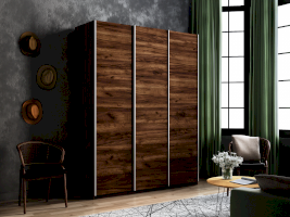 Серия «Прайм» отличается доступностью и функциональностью Навесные двери и лаконичная отделка фасадов создают прогрессивный дизайн. Подойдет тем, кто любит компактную и изящную мебель. Алюминиевые ручки и верхний ходовой профиль обеспечивают легкость и прочность конструкции. Многолетняя безупречная работа благодаря высококачественной немецкой фурнитуре Hettich. Прочная ПВХ-кромка толщиной до 1 мм защищает края от сколов и повреждений. Плавный ход дверей обеспечивает надежная система Hettich Top Line M. Дополнительно можно установить доводчики. Снаружи нет заглушек и винтов благодаря стяжечной системе крепления полок на флипперах, а корпус усилен эксцентриковыми стяжками. Навесные двери скрывают раздвижной механизм от глаз. Они надежно удерживаются в направляющих и не соскакивают. Каждая дверь поделена на 4 секции Секции расставляются в произвольном порядке, создавая новый дизайн фасада.