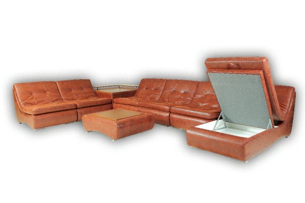 Комплектация: Высокоэластичный ППУ, вместительный ящик для белья, полки, столешница, два вида подлокотников, возможно изменения размеров модулей.