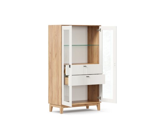 • За сборными распашными дверями со стеклом две стационарные горизонтальные перегородки и одна съемная стеклополка.