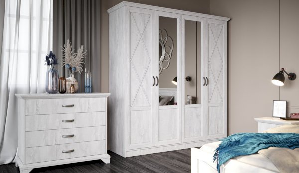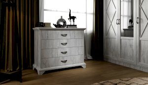 Вместительный комод Лорена в стиле неоклассика создает уютную атмосферу в интерьере гостиной или спальни. Белые фасады с фактурой и рисунком натурального дерева наполняют комнату светом, делают ее просторнее. Металлические ручки цвета состаренного серебра придают изысканность, а фигурные ножки и декоративный профиль крышки подчеркивают стилистику коллекции. В выдвижных ящиках на телескопических направляющих удобно хранить любые предметы одежды и личные вещи. Выполнен из экологичных материалов.