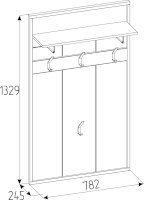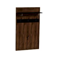 Настенная вешалка поможет использовать пространство прихожей экономно и рационально. Панель оснащена полкой для головных уборов и крючками для верхней одежды и сумок. Верхняя полка глубиной 229 мм крепится с помощью Г-образного полкодержателя. Каждый металлический крючок для одежды выдерживает нагрузку до 5 кг. Детали из черного ЛДСП поддерживают стилистику всей коллекции и подчеркивают выразительность текстуры декора Дуб Табачный с его характерными для благородной древесины крупными трещинами и сучками.