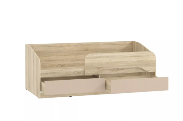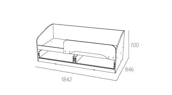 Кровать полностью безопасна для ребенка: у модели нет острых углов и накладных ручек на фасадах ящиков. Ограничитель без острых углов обеспечит ребенку безопасный сон.