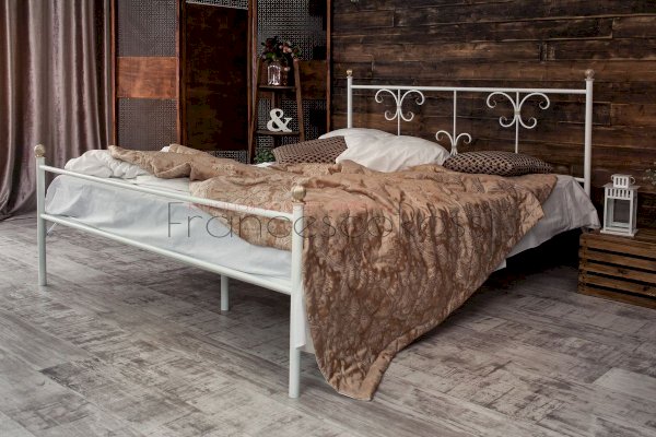 Кованая кровать Симона - это невероятное сочетание эффектного внешнего вида, потрясающих воображение результатов ручной ковки, стильного оформления в темных и светлых цветах и качественных, долговечных материалов исполнения.