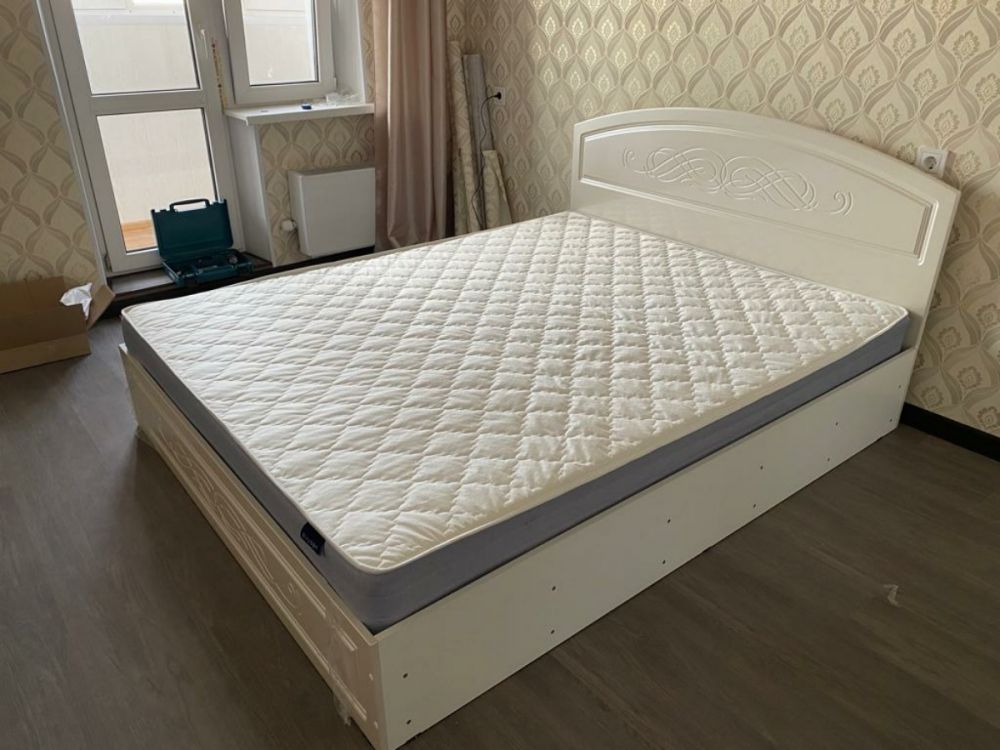 Кровать шикарная! Цвет безумно красивый, жемчужный. Пришла без изъянов, хорошо упакована. Со своим размером 160х200 в небольшой комнате не выглядит огромной. Собирается очень легко.