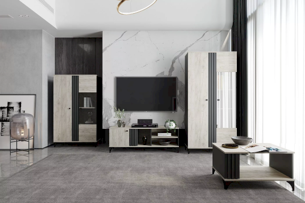 Тумба ТВА Отис предназначена для тех, кто ищет необычный дизайн в модной цветовой гамме дуба с контрастным антрацитом. Строгая геометрия форм придает сдержанности и минимализма, а изящные 3D полосы добавляют классического благородства.