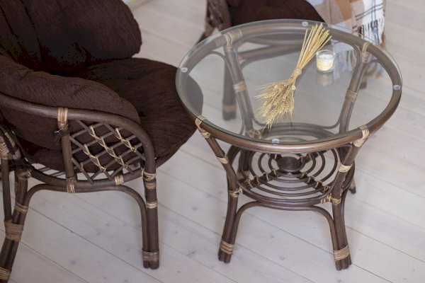 Багама - это изящный столик из натурального ротанга со стеклянной столешницей. Модель доступна в следующих цветах: натуральный, мед, коньяк, миндаль матовый, орех матовый, темно-коричневый, венге, венге матовый, олива.