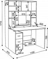 • Столешница на секретерных петлях и барных кронштейнах, благодаря чему стол можно сложить, например, на период каникул.