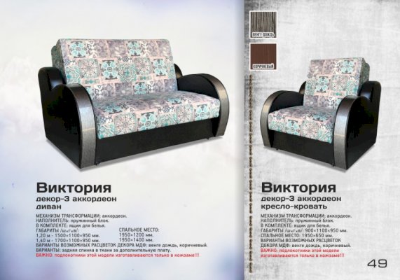 Кресло аккордеон Виктория с декором-3 (Асмана) - за 29 931 руб. в Сыктывкаре. Купите на сайте syktyvkar.onlinemarketmebeli.ru или по телефону 8(800)505-30-63 уже сегодня! Уточнить наличие, комплектацию, актуальную цену можно бесплатно у менеджера ежедневно. Закажите Кресло аккордеон Виктория с декором-3 (Асмана) до конца акции! Доступна покупка в кредит, рассрочку. Доставим со склада или на заказ.