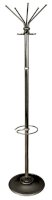 Вешалка напольная на 5 крючков. Утяжеленное двойное основание. Оснащена подставкой для зонтов. Крючки и основание вешалки напольной выполнены из  серого металлика.