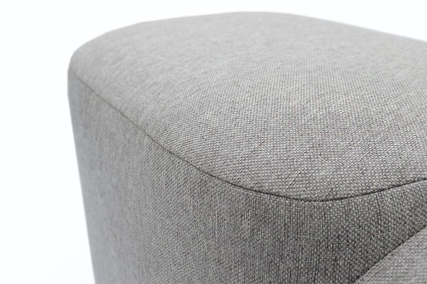 Пуф обшит прочной и экологичной рогожкой серого цвета. Материал натуральный, приятный на ощупь, устойчив к загрязнениям.