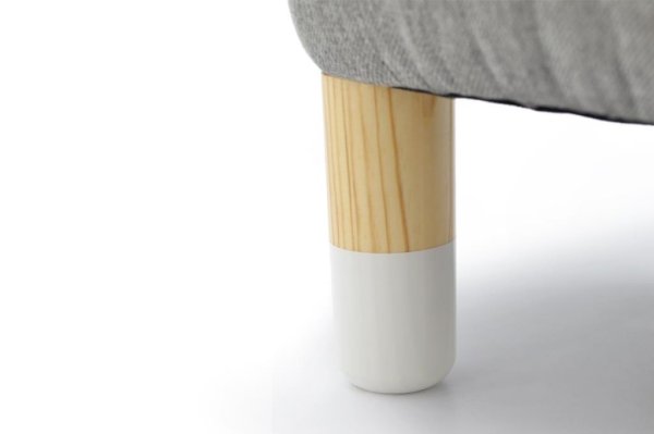 Ножки выполнены из массива сосны, тщательно отшлифованы и покрыты лаком на водной основе. Низ ножек украшают белые “носочки”, покрашенные эмалью на водной основе. Все используемые при производстве материалы полностью экологичны и безопасны.