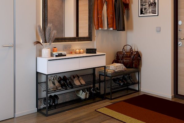 Стильная и модная консоль для обуви в стиле Лофт из алюминиевого профиля. Изделие не разборное, одноразовая сборка алюминиевой конструкции.