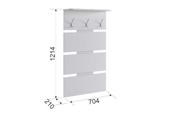 Состоит из: крючков для сумок и одежды, полки для головных уборов. Изделие симметричное.