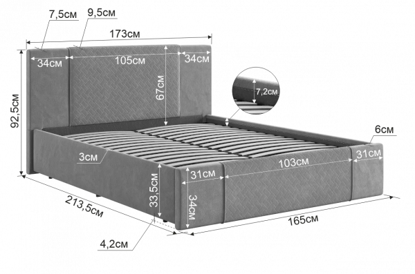Углубление под матрас: 6 см