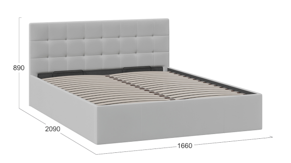 В конструкции кровати предусмотрен подъемный механизм и заглушина, состоящая из одной детали ДВП, которая располагается в изножье и не имеет крепление к каркасу кровати. Дно из ДВП поможет организовать место для хранения и сохранить порядок в кровати.