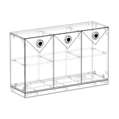 Наполнение изделия представлено в виде трех отделений для закрытого хранения различных вещей. Отделения с дверками внутри дополнительно разделены полками, что позволяет структурировать и упорядочить хранение.
