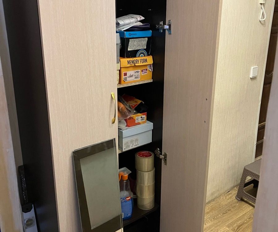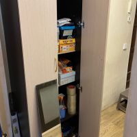 Подбирали шкаф под размеры проема в стене, идеально вписался