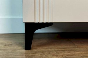 Для устойчивости и защиты пола от повреждений тумба оснащена металлическими регулируемыми опорами, которые позволяют выровнять изделие на неровных поверхностях. При этом тумбу можно подвесить к стене, без установки опор.